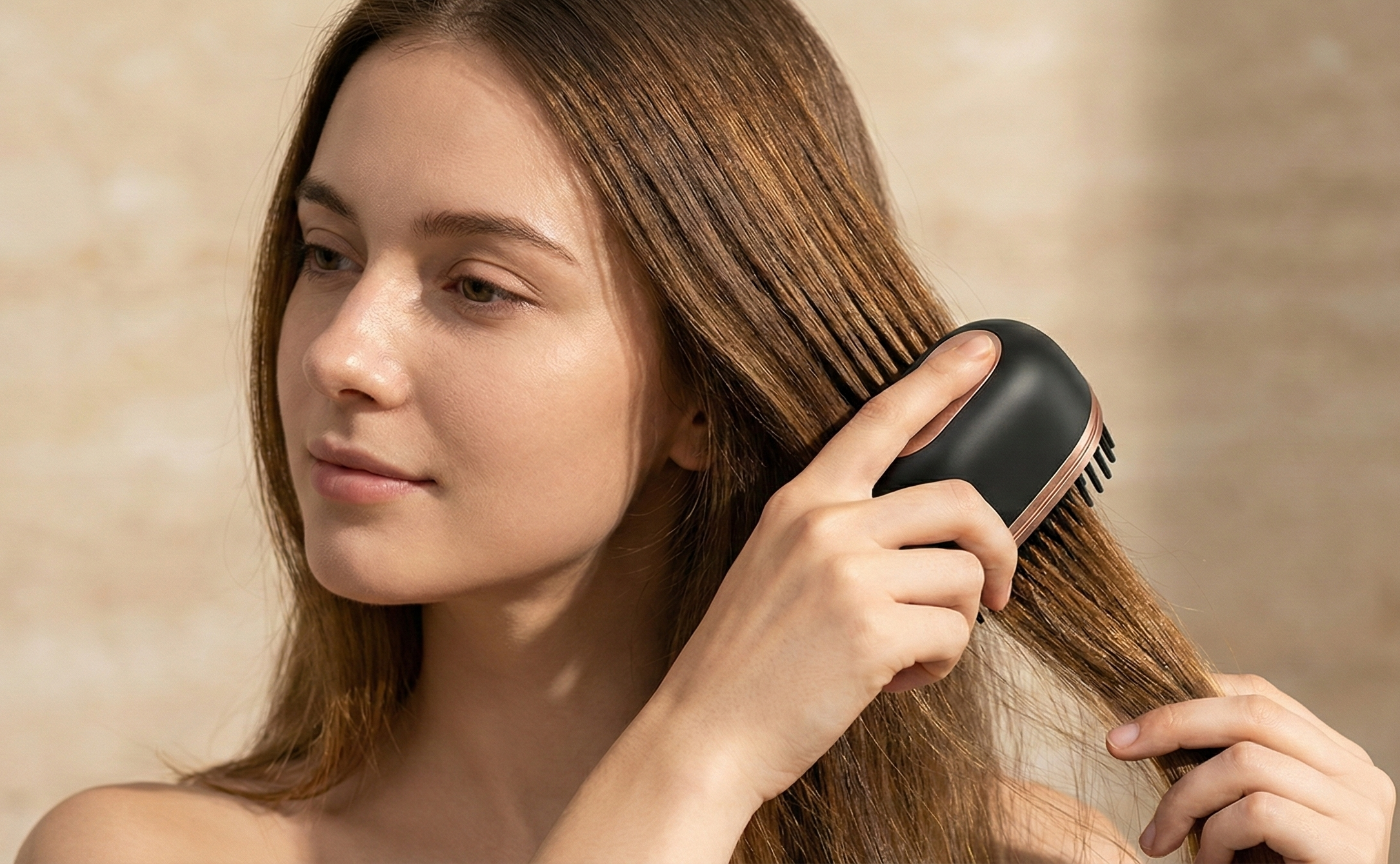 Experience effortless, polished hair in minutes. Our mini heated straightening brush smooths frizz and flyaways with a quick brush-through, making everyday styling fast, simple, and travel-ready—so you can look put-together anywhere.